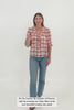 Discover our Chloe Shirt. Ethically made from a sustainable soft cotton crinkle yarn dye plaid fabric, she exudes comfort and style. Designed as a voluminous blouse, she features timeless, feminine details such as a ruffle neckline, real shell buttons, and petit pin-tucks. A true closet staple, the Chloe Shirt can be styled from day to night all year long.